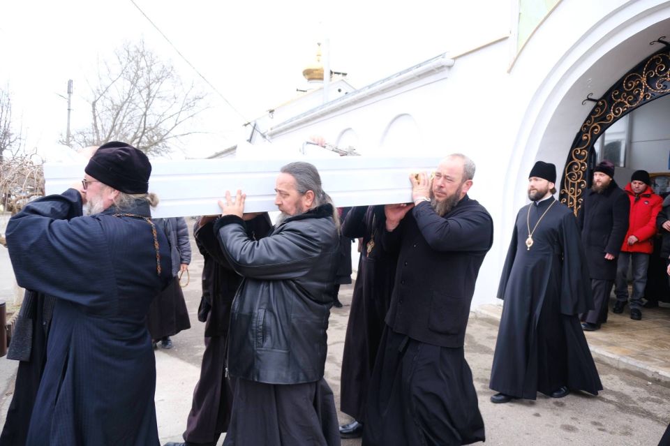 13 февраля епископ Бердянский и Приморский Петр возглавил Божественную литургию, а также чин отпевания протоиерея Сергия Кляхина в монастыре прп. Саввы Освященного г. Мелитополь.