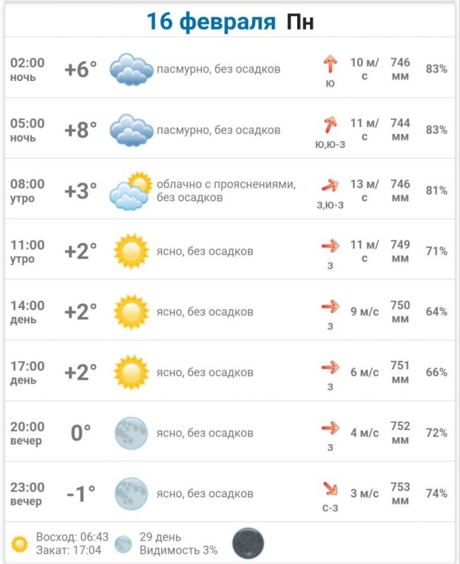 Подробно о погоде в Днепрорудном 16 февраля 2026 года