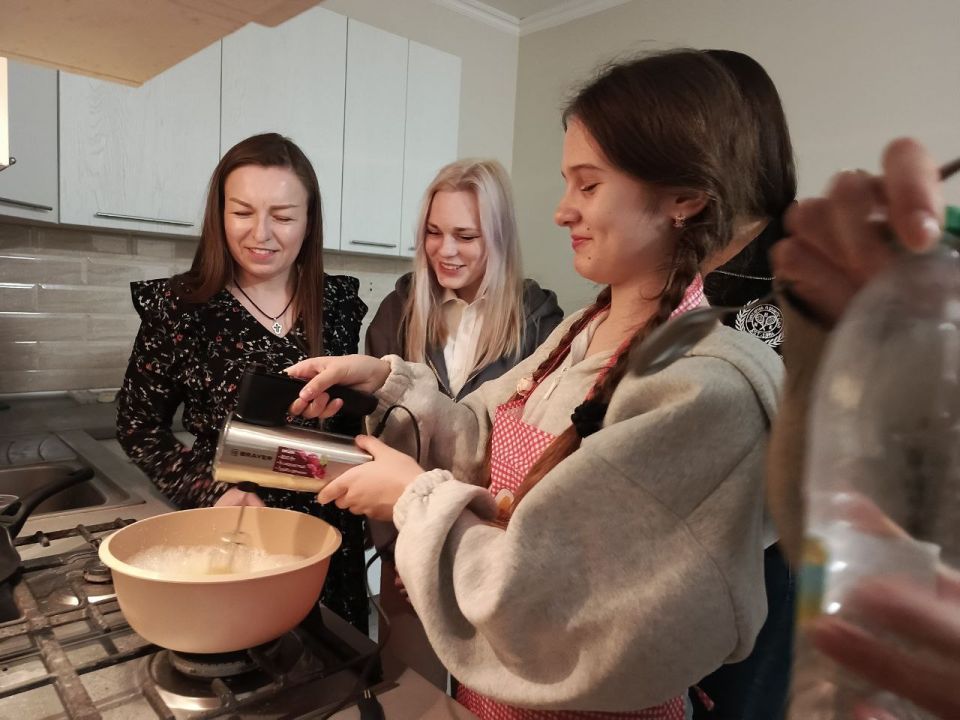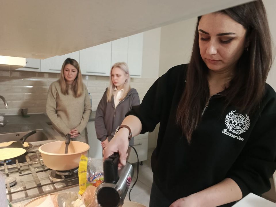 Весело и шумно было в первый день Масленицы в молодежном центре в Приморске. Там выпекали блины!