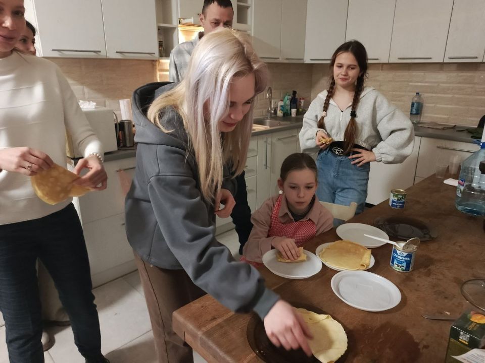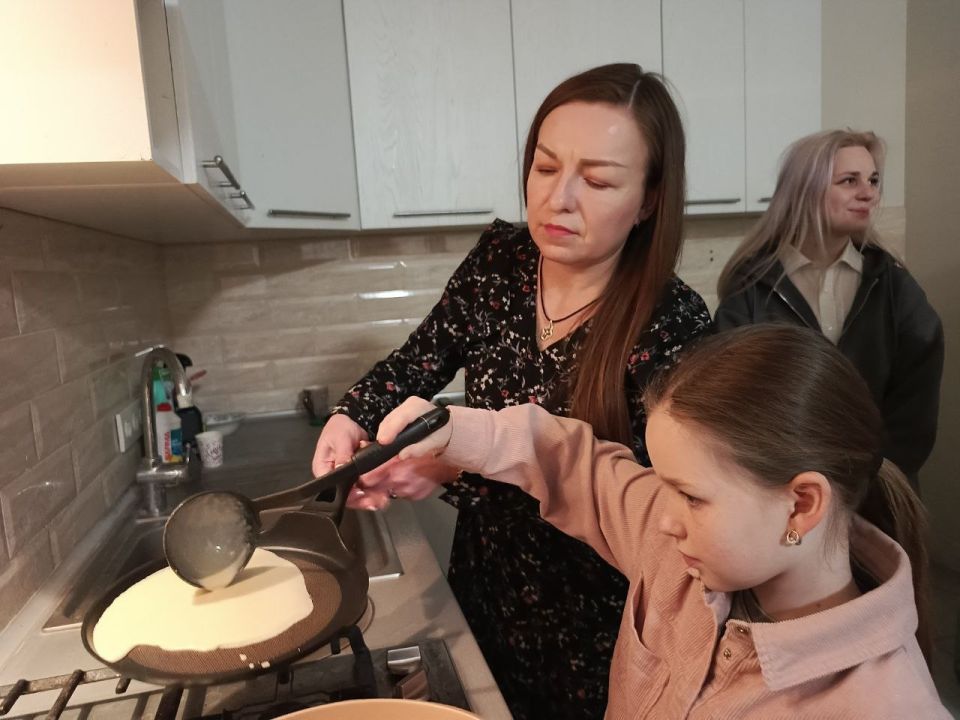 В гости к ребятам с продуктами и своим фирменным рецептом традиционного масленичного блюда пришла представитель Мурманской области в Приморском муниципалитете Ирина Гайдуковская.
