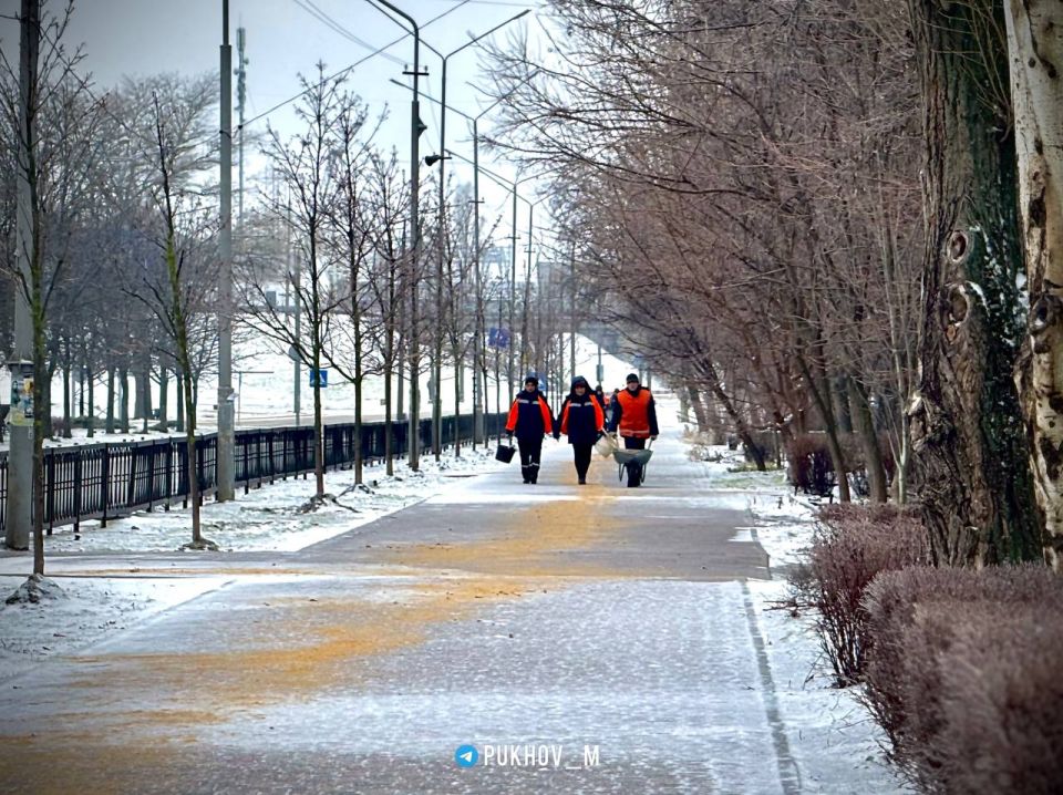 Коммунальные службы работают в усиленном режиме с самого утра. Чтобы обеспечить безопасность жителей, спецтехника и бригады рабочих производят обработку пешеходных дорожек и проезжих частей песко-соляной смесью и занимаются расчисткой наиболее проблемных зон.
