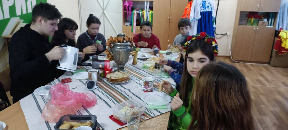 Дети посидели в тесной душевной компании, полакомились блинами с ароматной чашечкой чая. Некоторые ребята были одеты в традиционные русские костюмы, сшитые талантливым руководителем учреждения культуры Инзовки Вероникой Вапировой, - это придало действу народного колорита и особой значимости.