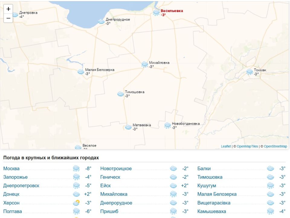 Погода 19 февраля 2026 года в крупных и ближайших к Васильевке городах и населённых пунктах.