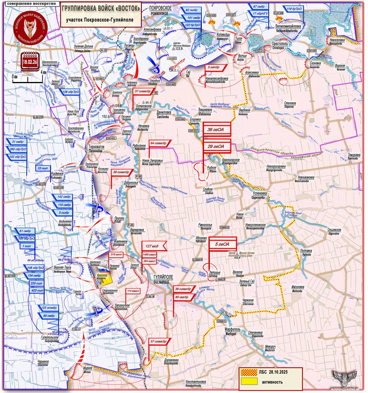 Армия России готовит плацдарм для выхода ко второй линии обороны ВСУ на восточном участке Запорожского направления Короткая сводка с фронта 18 февраля 2026 года