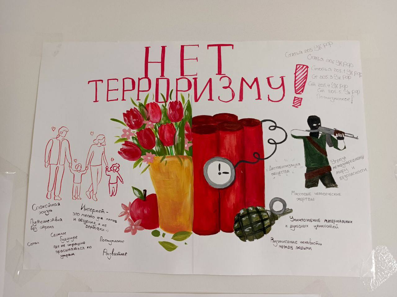 Активисты молодежного движения "ЮгМолодой" проявили себя в конкурсе рисунков и плакатов на тему "Молодежь — за культуру мира, против терроризма".