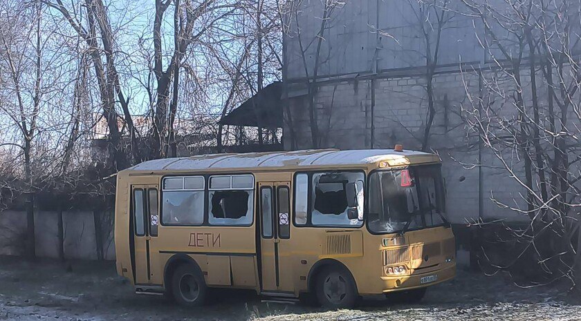 В результате атаки поврежден фасад учебного заведения, пострадала прилегающая территория. Осколками посекло школьные автобусы.
