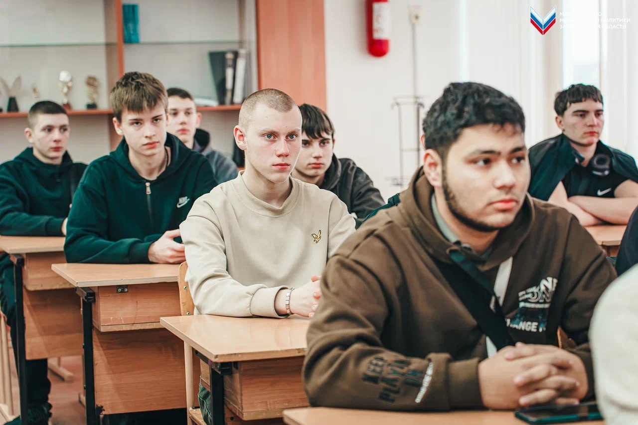 «Волонтёры Победы» провели вМелитопольском колледже транспорта и сферы услуг Всероссийский урок мужества «День защитника Отечества». Активисты поговорили со студентами о героизме воинов Красной армии и рассказали ребятам об истории праздника.