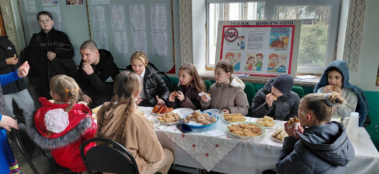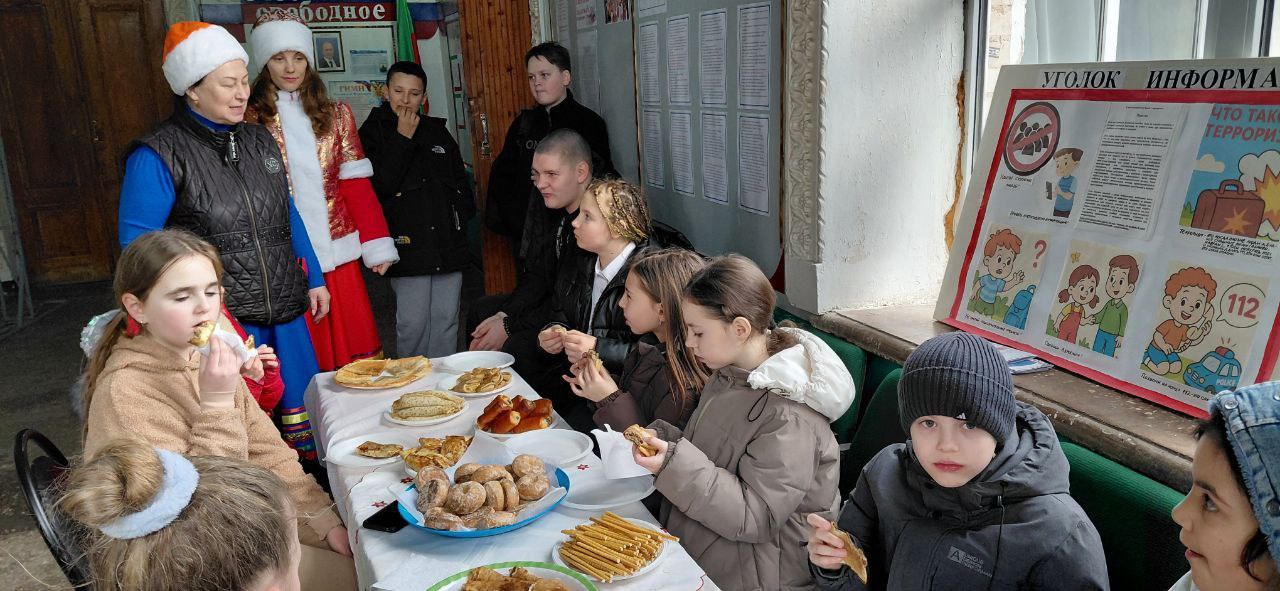 Конечно, праздник не обошёлся без вкусных поджаристых блинов и сладкого чая.