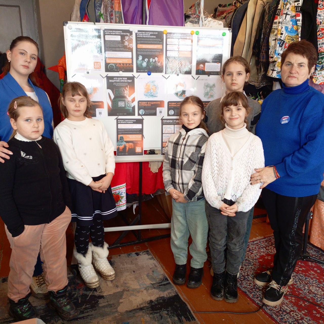 В Старопетровском ДК для кружковцев подготовили информационный стенд с аналогичным названием — он знакомит посетителей с ключевыми вехами истории отечественной армии и подвигами защитников страны.