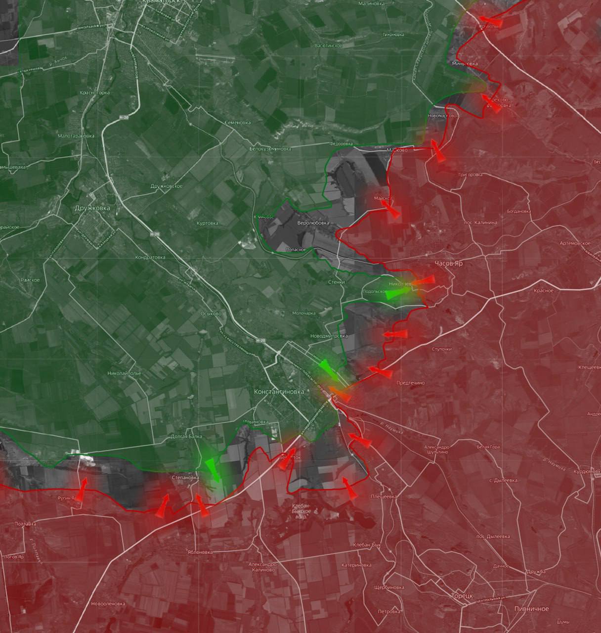 «На Константиновском направлении продолжаются боестолкновения в районе Берестка и Ильиновки.Идут бои в районе Миньковки.ВС РФ продвинулись в районе Орехово-Васильевки».Вражеские сводки