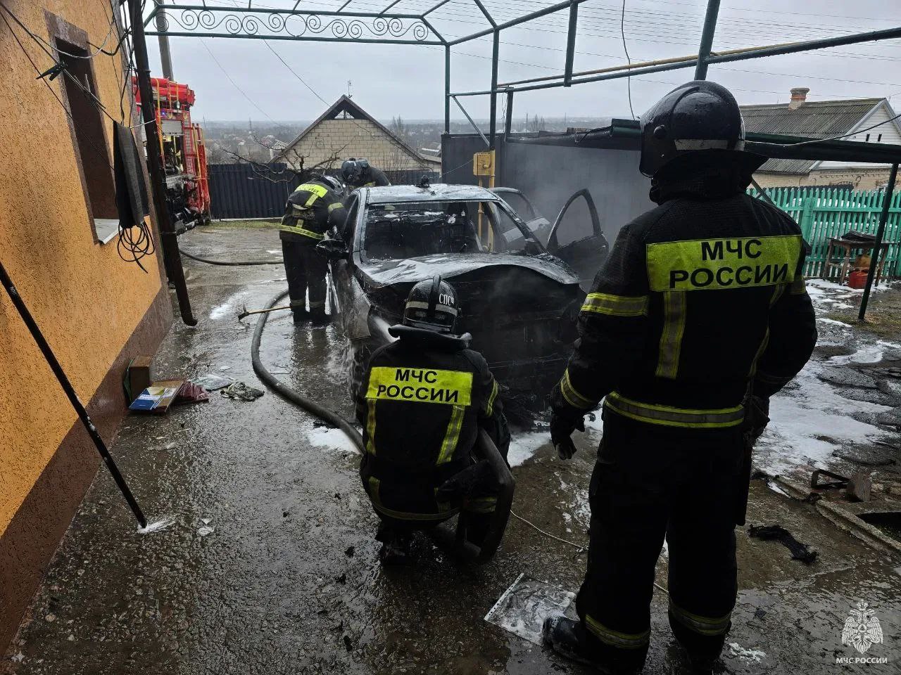 Автомобиль загорелся в гараже на территории частного домовладения в Мелитополе. До прибытия пожарно-спасательного подразделения владелец выкатил горящий автомобиль на улицу.