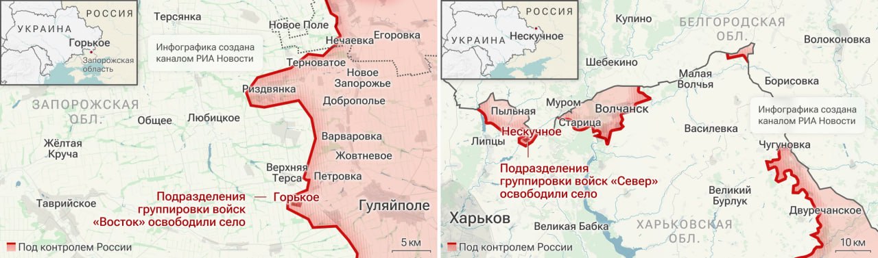 Российская армия освободила Горькое и НескучноеПодразделения группировки войск «Восток» освободили населенный пункт Горькое в Запорожской области. Одновременно «Север» выбил противника из населенного пункта Нескучное в Харьковской области. Об этом в...