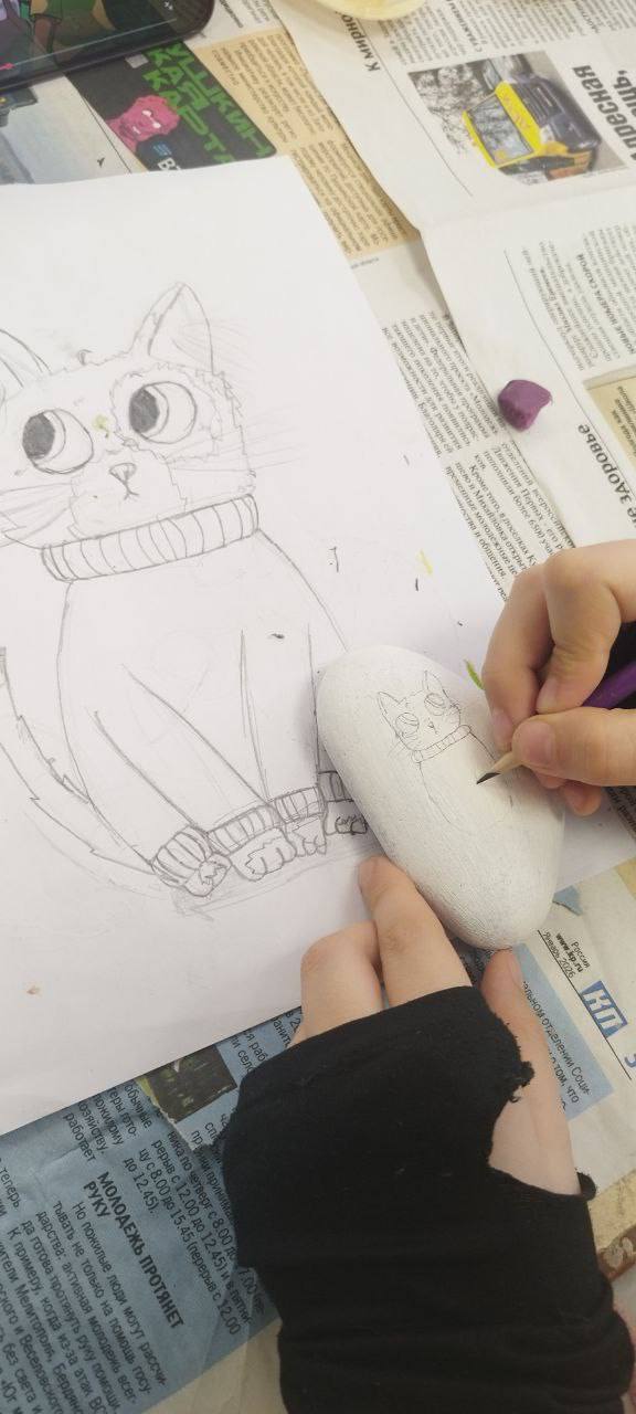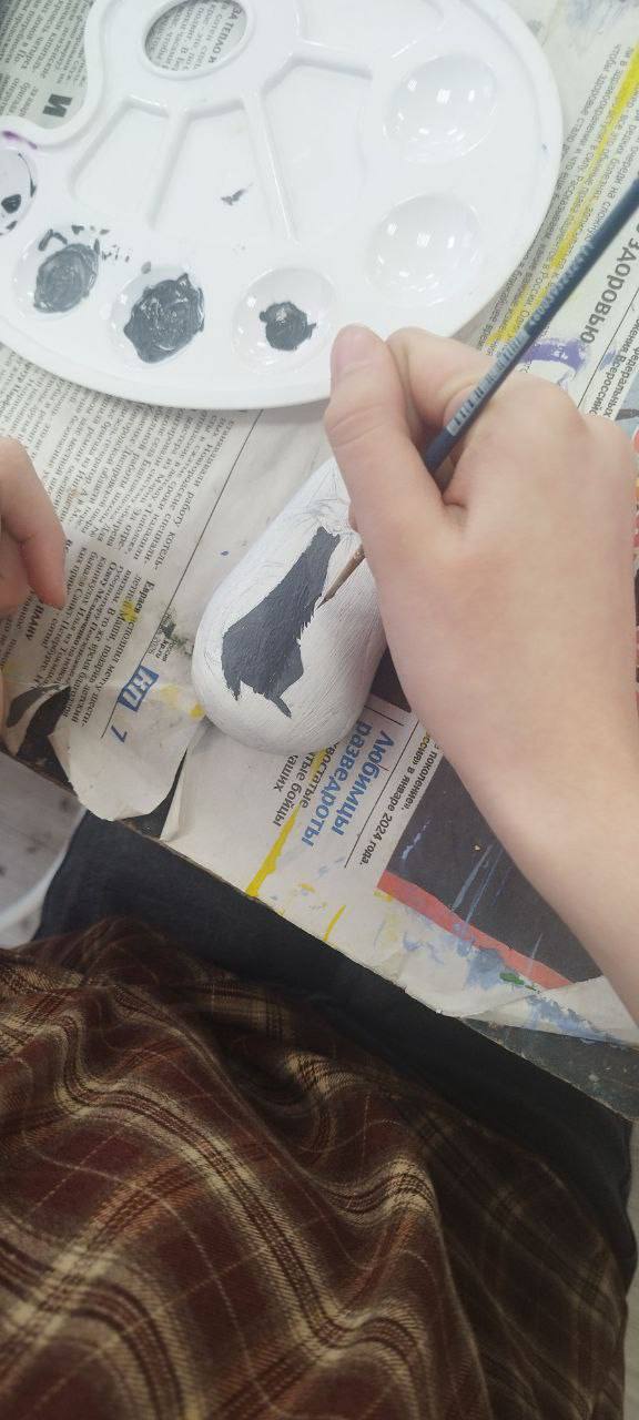 27 марта 2026 года в Мелитопольской детской художественной школе с учениками 1-го класса ( преподаватель Мелихова Ю. В.), состоялся тематический мастер-класс «Портреты кошек на крымской гальке», приуроченный к празднованию Дня кошек в России