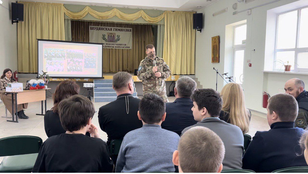 Впервые в «Бердянской православной гимназии» прошёл урок мужества, на которой были приглашены действующие бойцы ЦСН «Барс-Сармат».