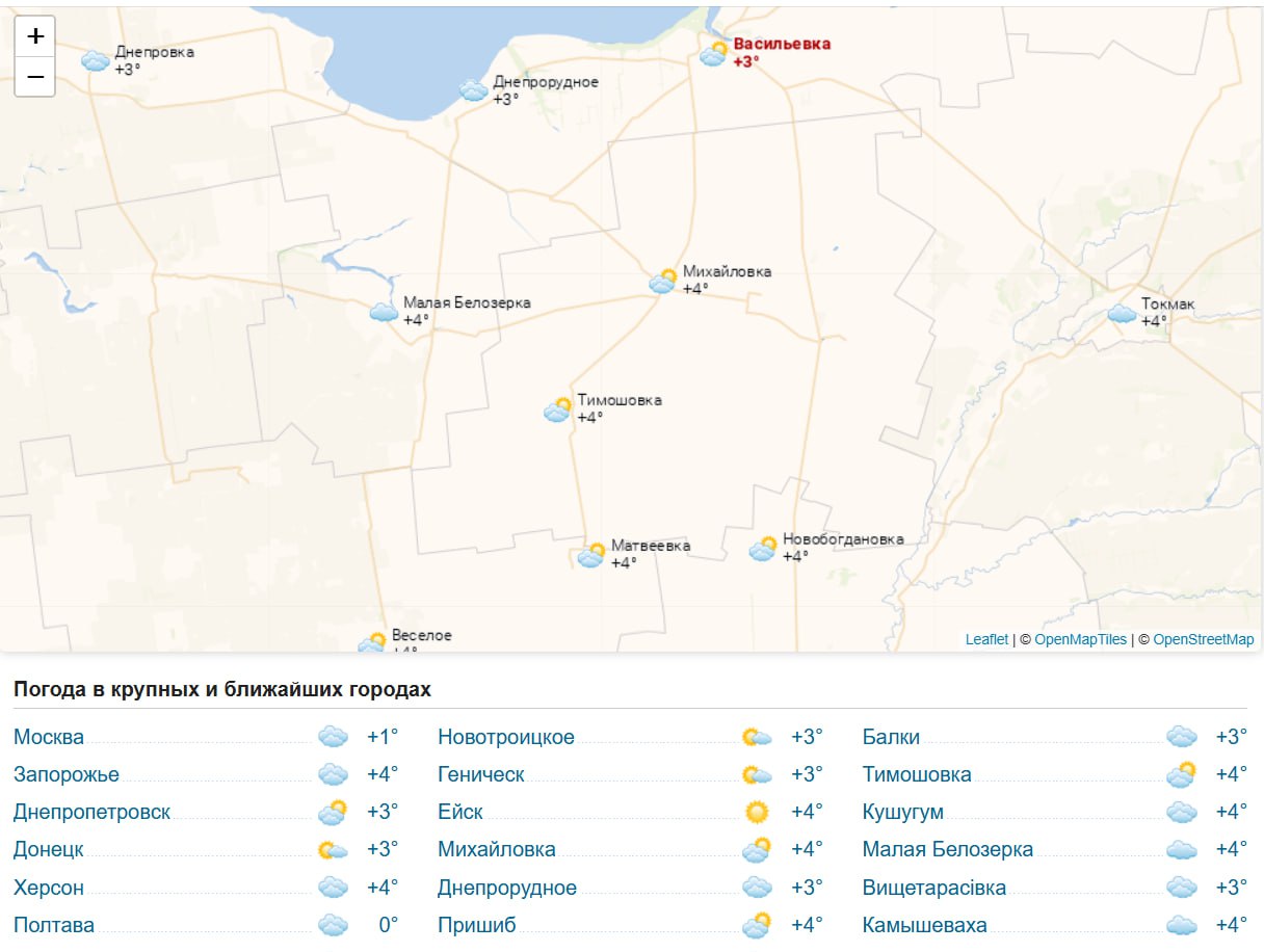 Погода 2 марта 2026 года в крупных и ближайших к Васильевке городах и населённых пунктах