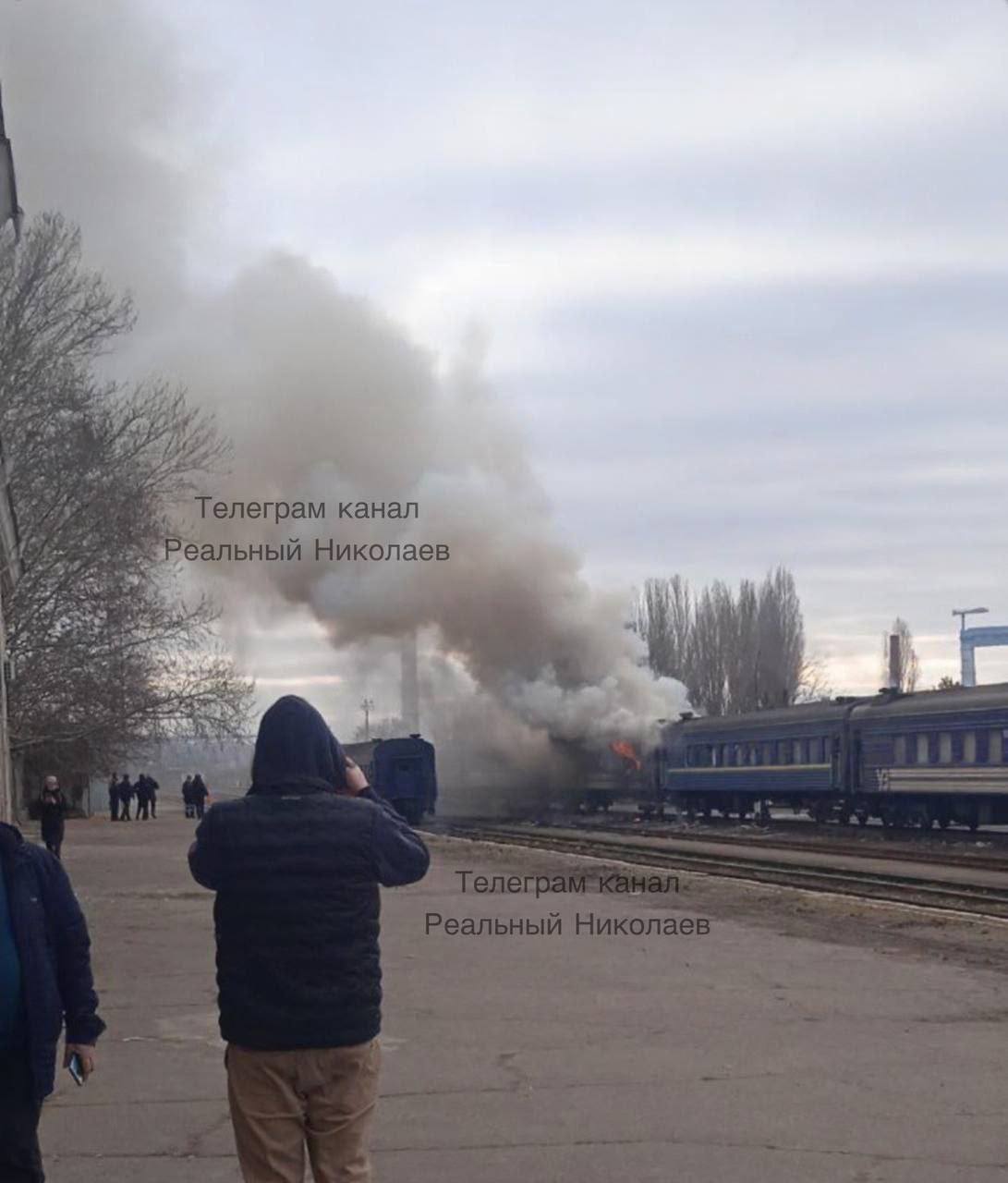 Прошлой ночью по меньшей мере 4 российских беспилотника «Герань-4» атаковали поезд на Николаевском железнодорожном вокзале, в результате чего произошел пожар.