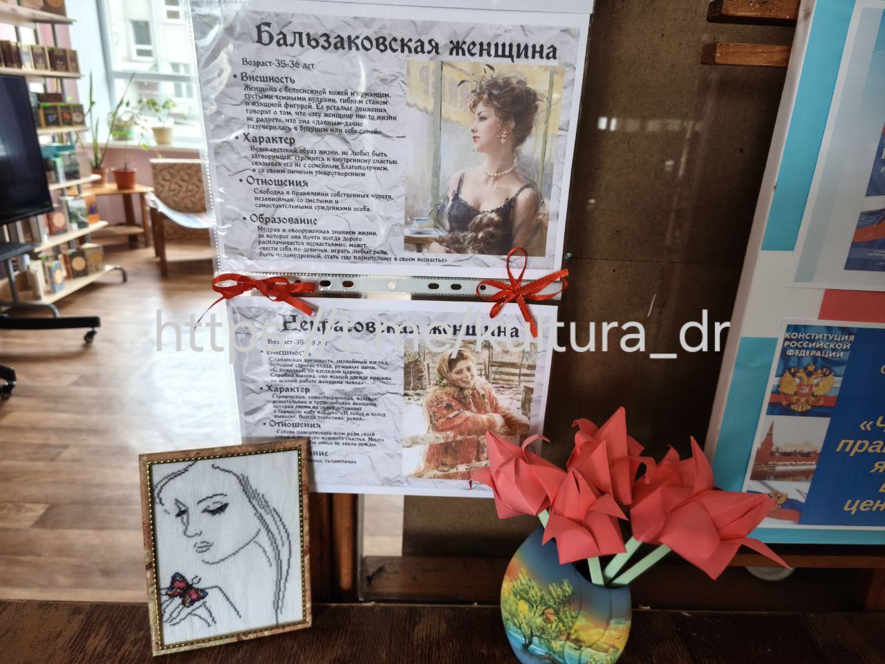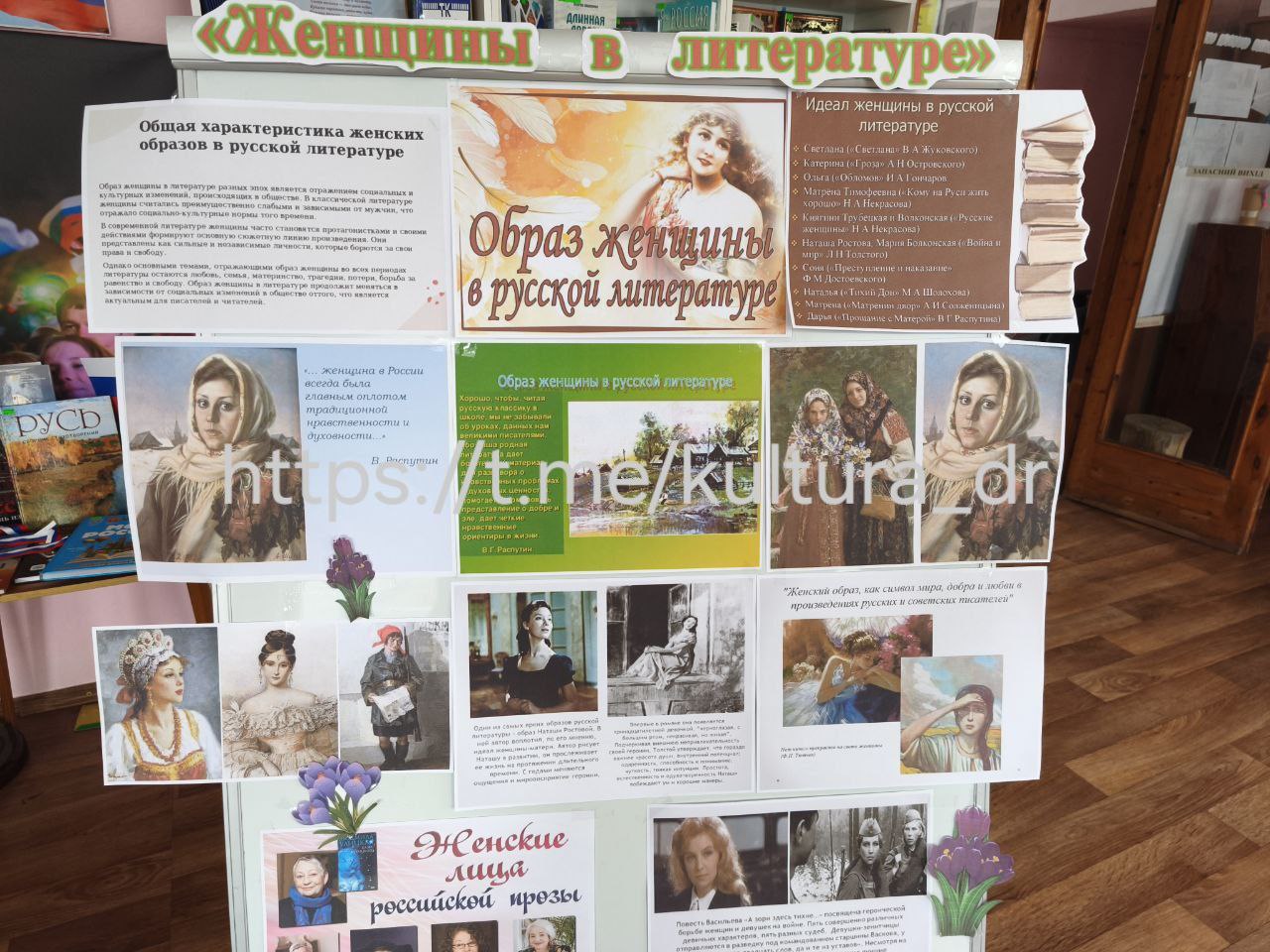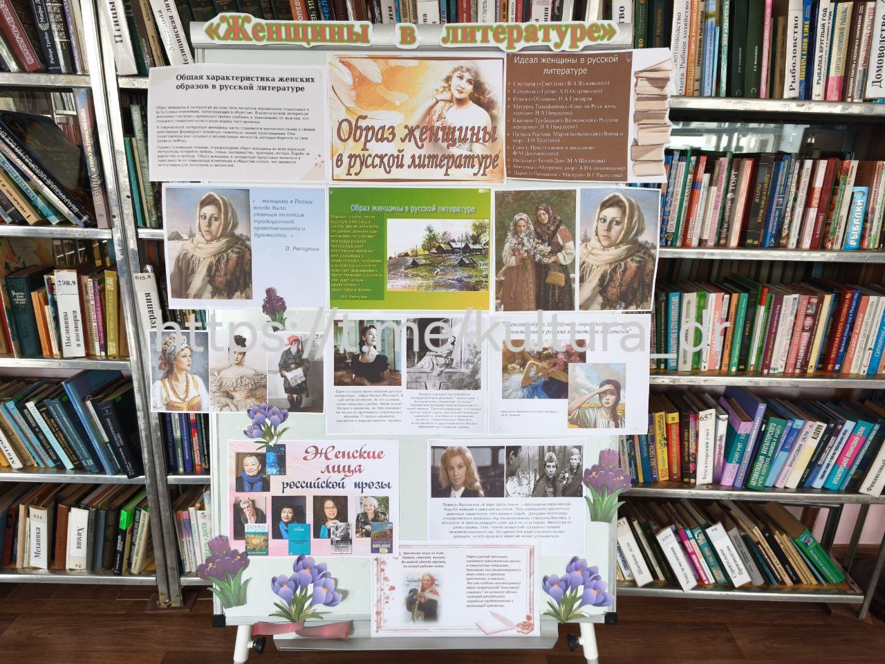 К мероприятию был оформлен информационный стенд «Женщины в литературе», на котором представлены образы сильных и нежных, ласковых и дерзких героинь разных эпох.