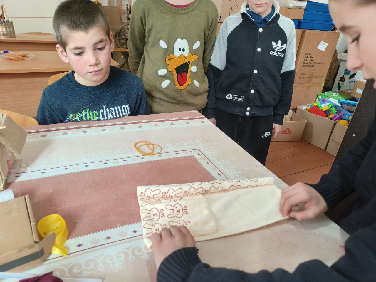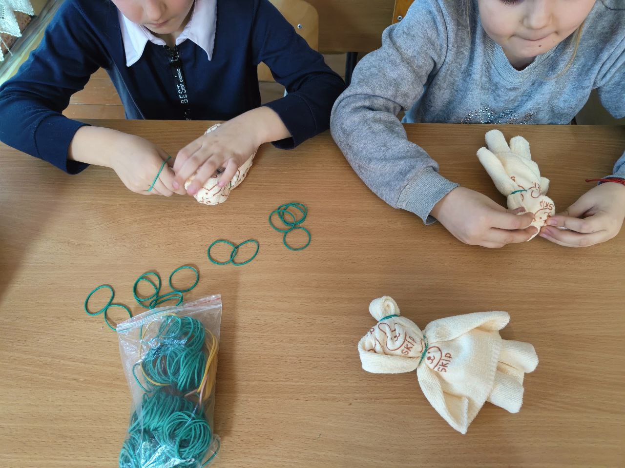 На следующем занятии юные мастера взялись за новую задачу: дети принесли маленькие полотенчики и салфетки, из которых с помощью фантазии и умелых рук получились очаровательные мишки. Ребята аккуратно сворачивали и закрепляли ткань, придавая своим поделкам милый и уютный вид.