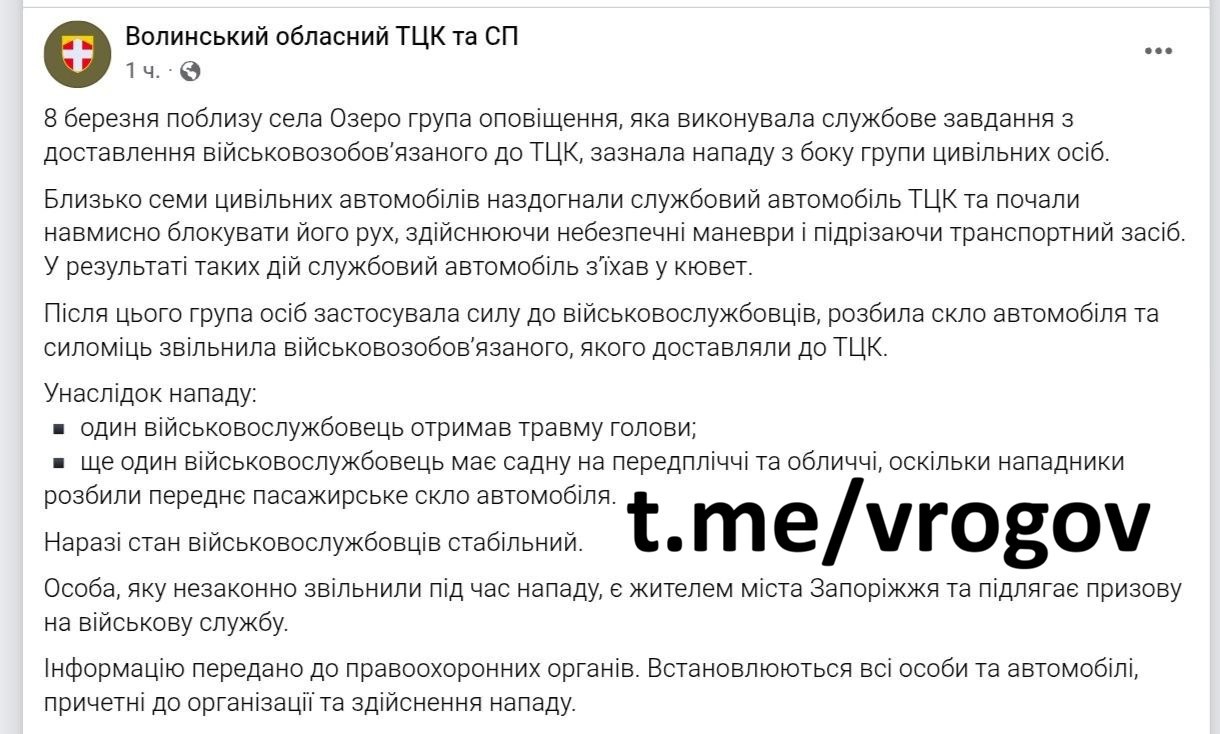 И вновь земляки-запорожцы объединяются, чтобы дать отпор душегубам ЗеРейха: на Волыни люди устроили погоню за бусом ТЦКшников, отправили его в кювет и освободили мобилизованного.