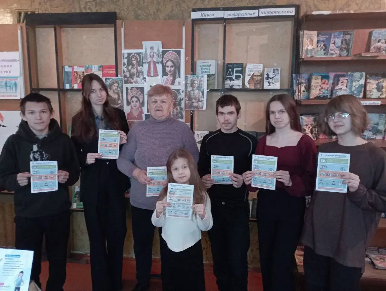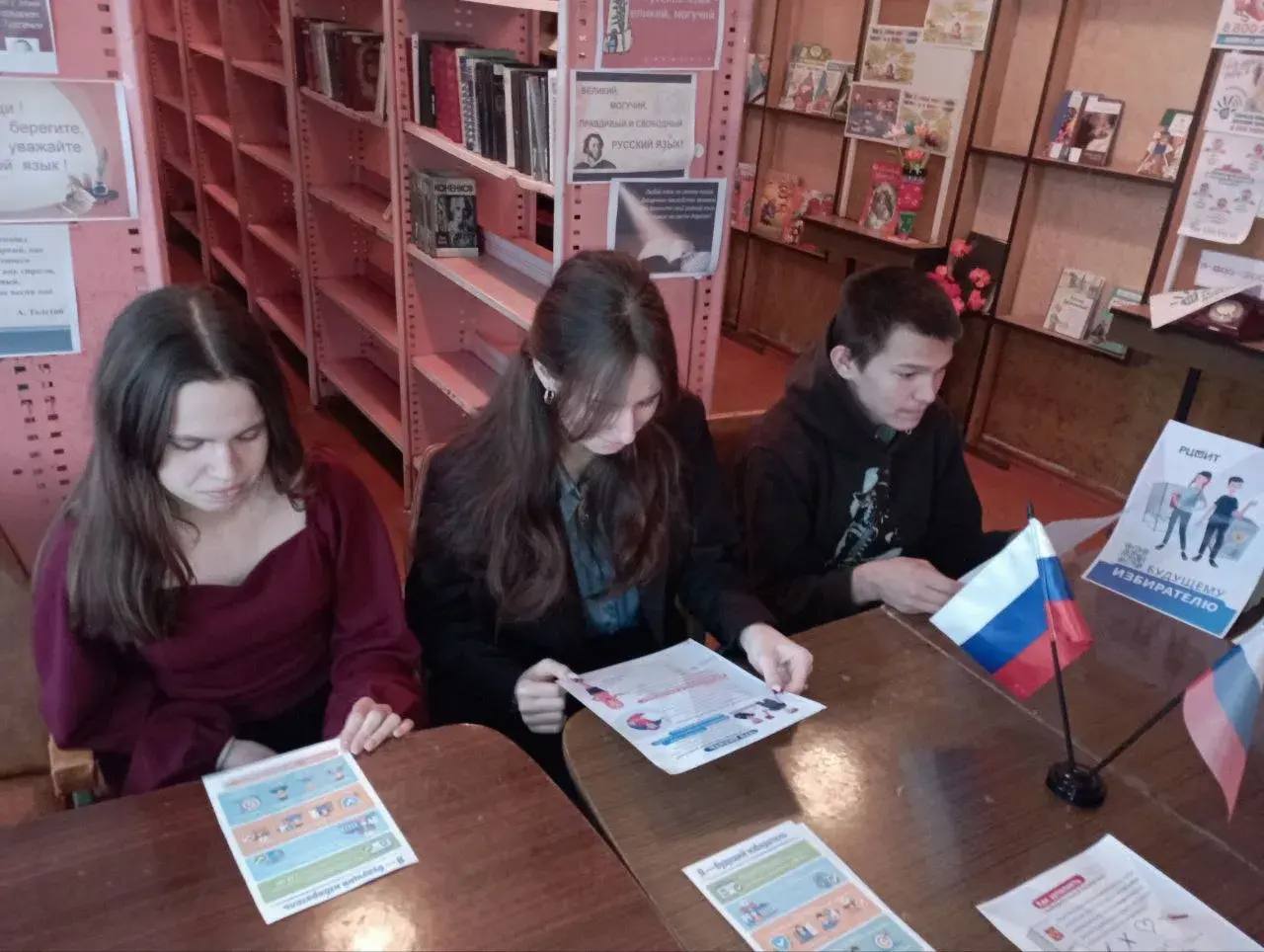 Ко Дню молодого избирателя в библиотеке п. Таврия Весёловского МО библиотекарь (она же председатель УИК №576) Ольга Титова (ТИК №18) провела увлекательный информационный час для будущих избирателей.