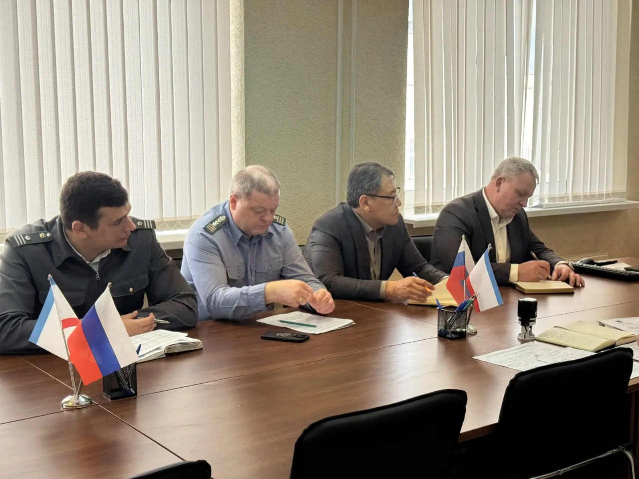 Управление Россельхознадзора представлял руководитель Арсен Арзиев. Кроме того, присутствовали заместитель руководителя Алексей Каменцев, начальник отдела внутреннего ветеринарного контроля и надзора по Республике Крым Карим Мбарки, начальник отдела федерального государственного ветеринарного контроля и надзора на Госгранице РФ по Республике Крым и Севастополю Максим Демин. Со стороны Управления ветеринарии Запорожской области участие принял исполняющий обязанности начальника Валерий Нанков.