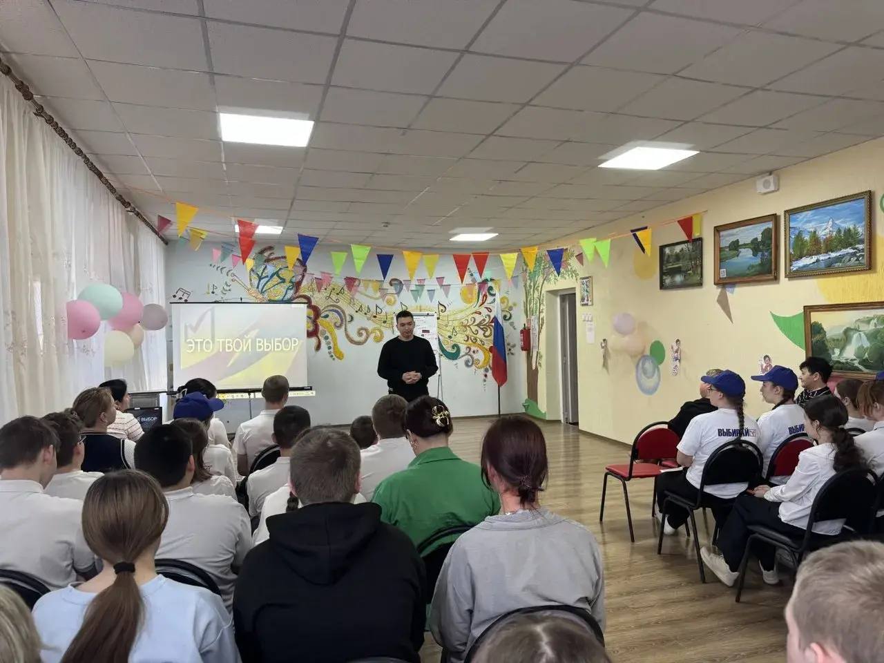 Школе презентовали видеоролик участника Всероссийского конкурса «Атмосфера» «Твой голос — твой выбор!». Перед старшеклассниками также выступил призёр регионального электорального конкурса «Южный Маяк». Он поделился своим опытом участия в проектах ИК ЗО.
