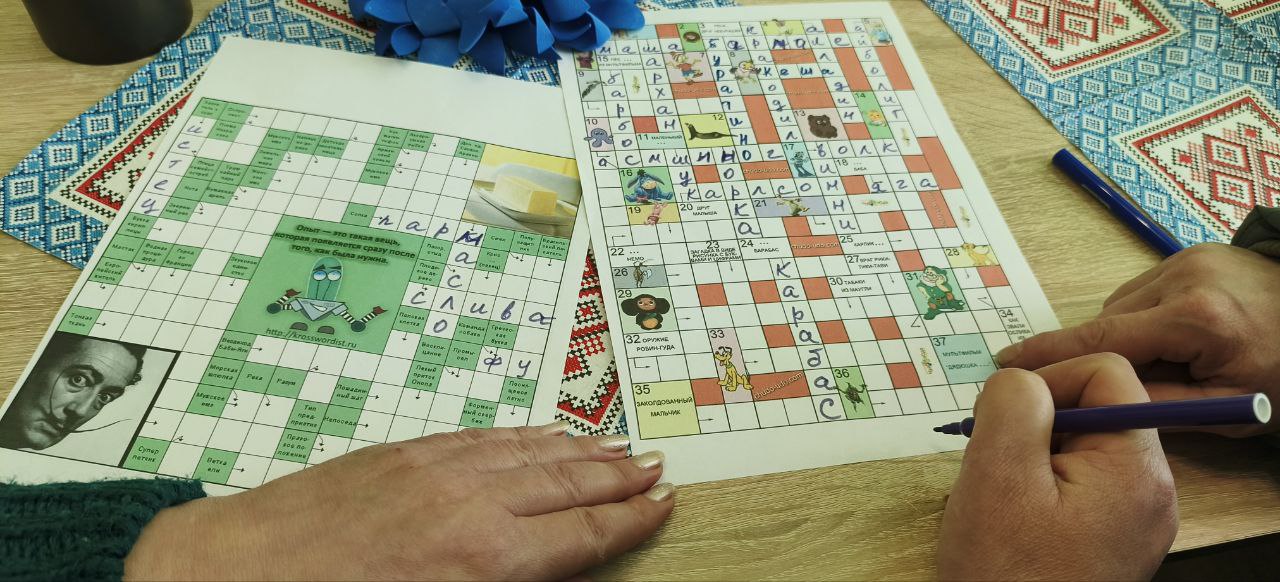 Гости с азартом разгадывали кроссворды, соревнуясь, кто быстрее найдёт ответы. Шутки, дружеские подсказки и радостные возгласы наполнили зал атмосферой веселья и единства — каждый почувствовал себя частью большого праздника.