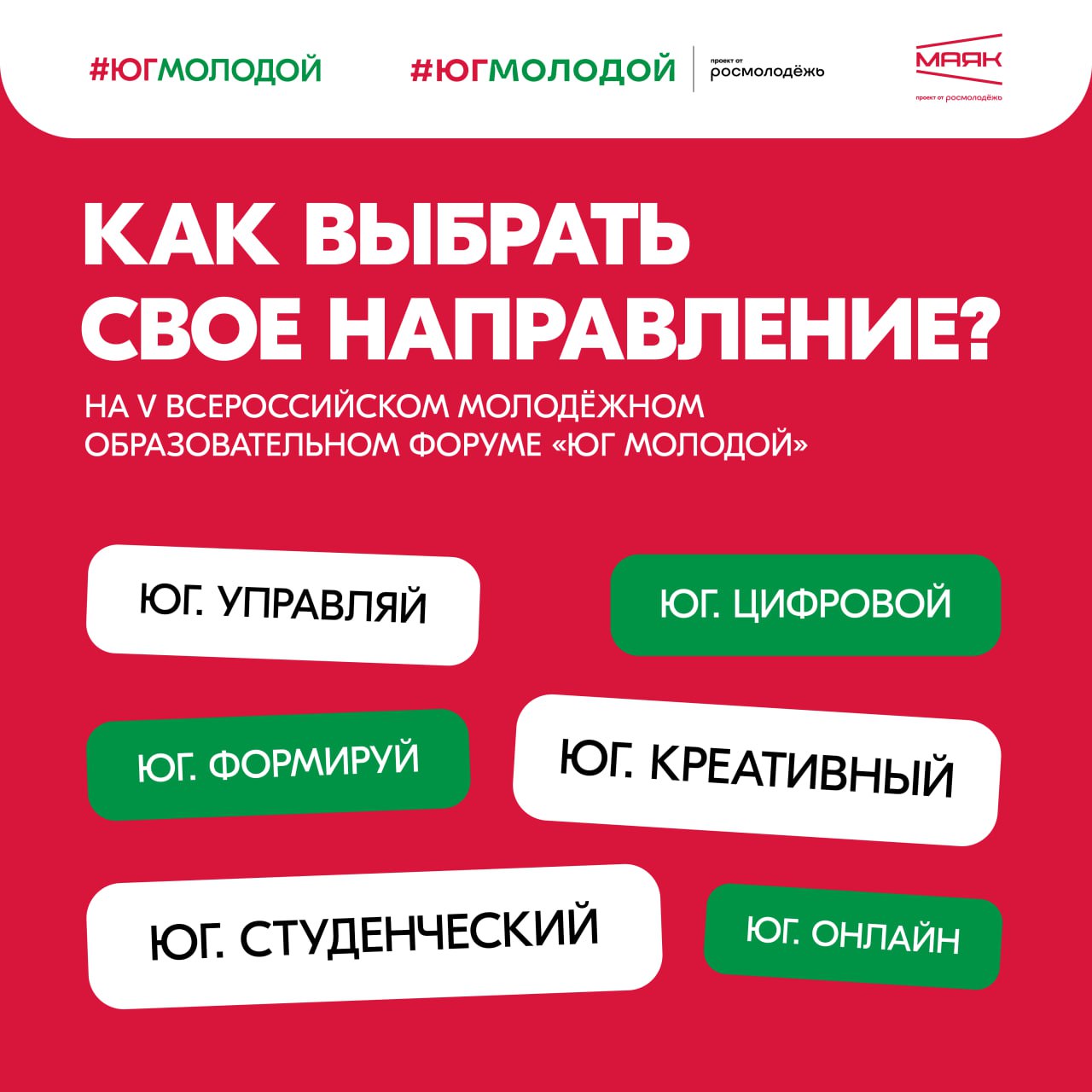 Рассказываем о направлениях, которые ждут тебя на V форуме «Юг Молодой» платформы Росмолодёжь.Форумы