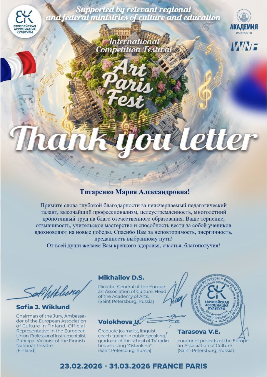 Искренние поздравления руководителю коллектива - Титаренко Марии Александровне, за её труд и подготовку таких талантливых артистов!