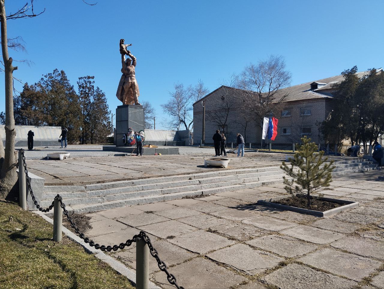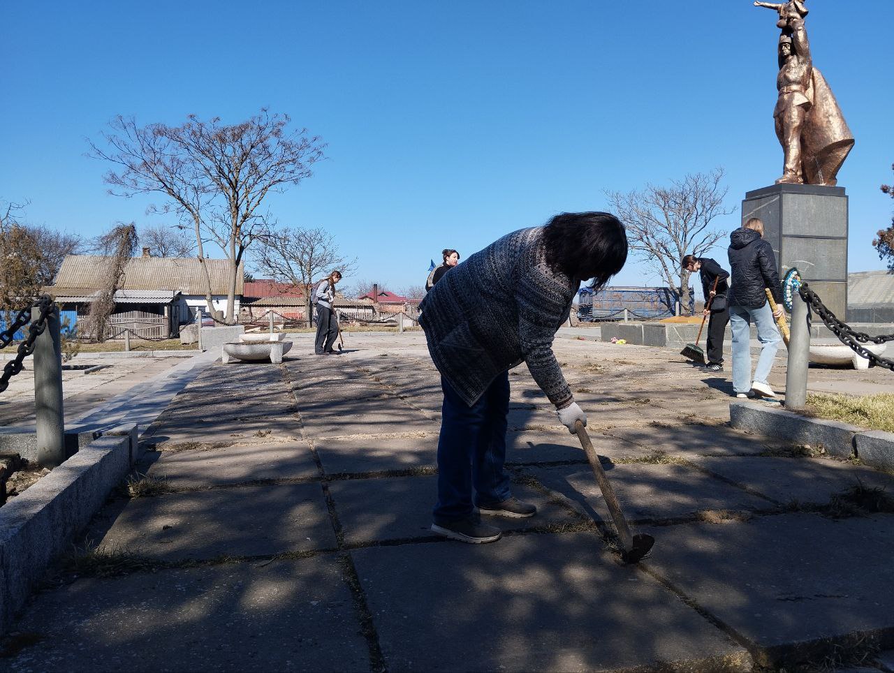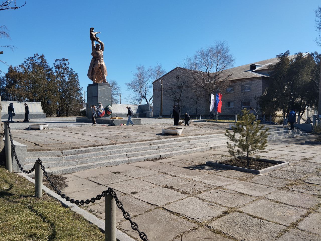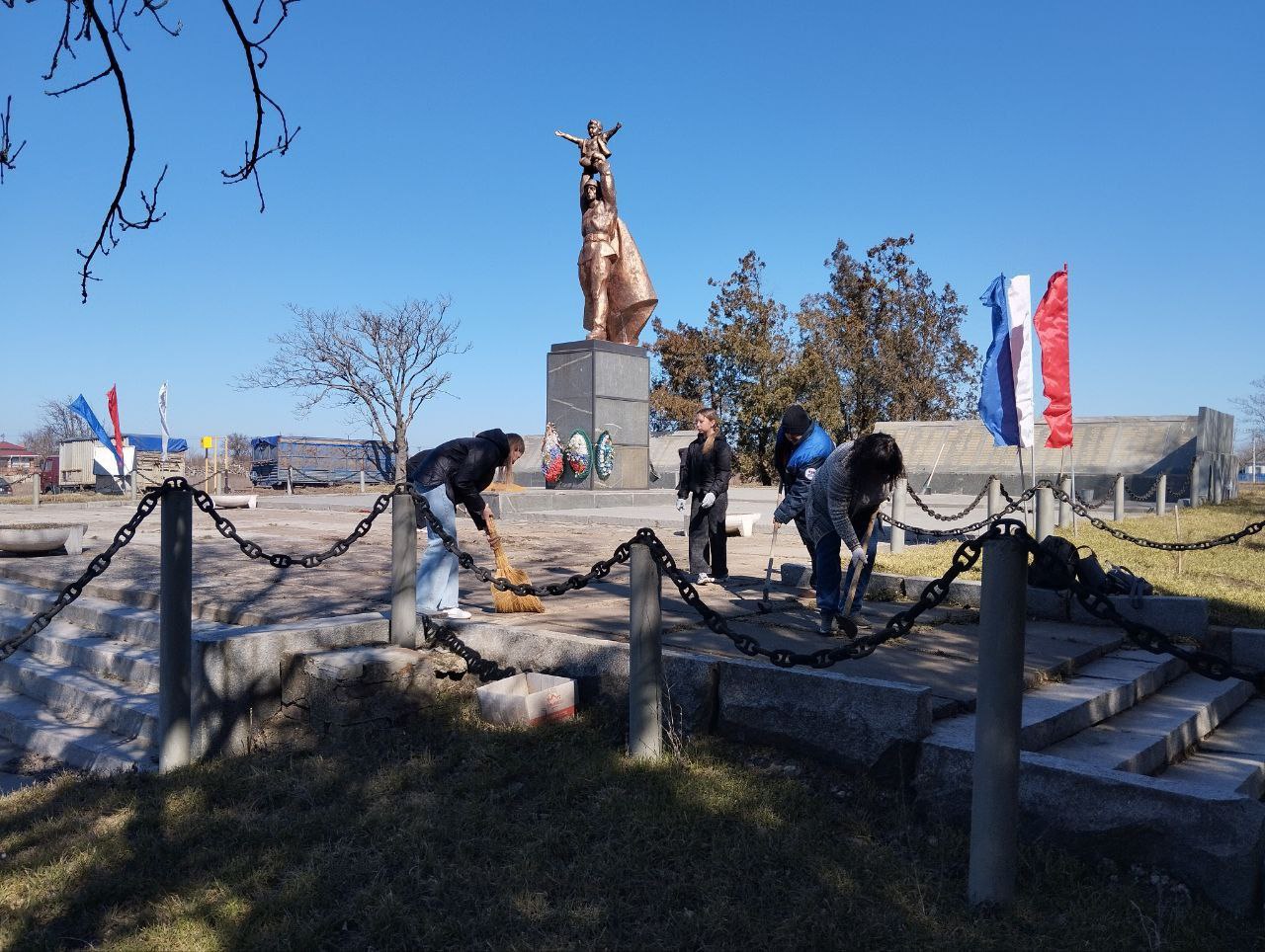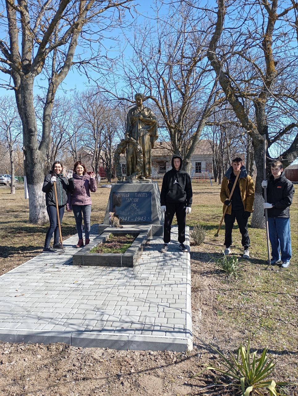 Сотрудники администрации Бердянского муниципального округа, работники местного Дома культуры, школьники и представители партии «Единая Россия» первичной ячейки №19 объединили усилия, чтобы привести в порядок территорию вокруг памятников Воинам-односельчанам и Братской могилы.