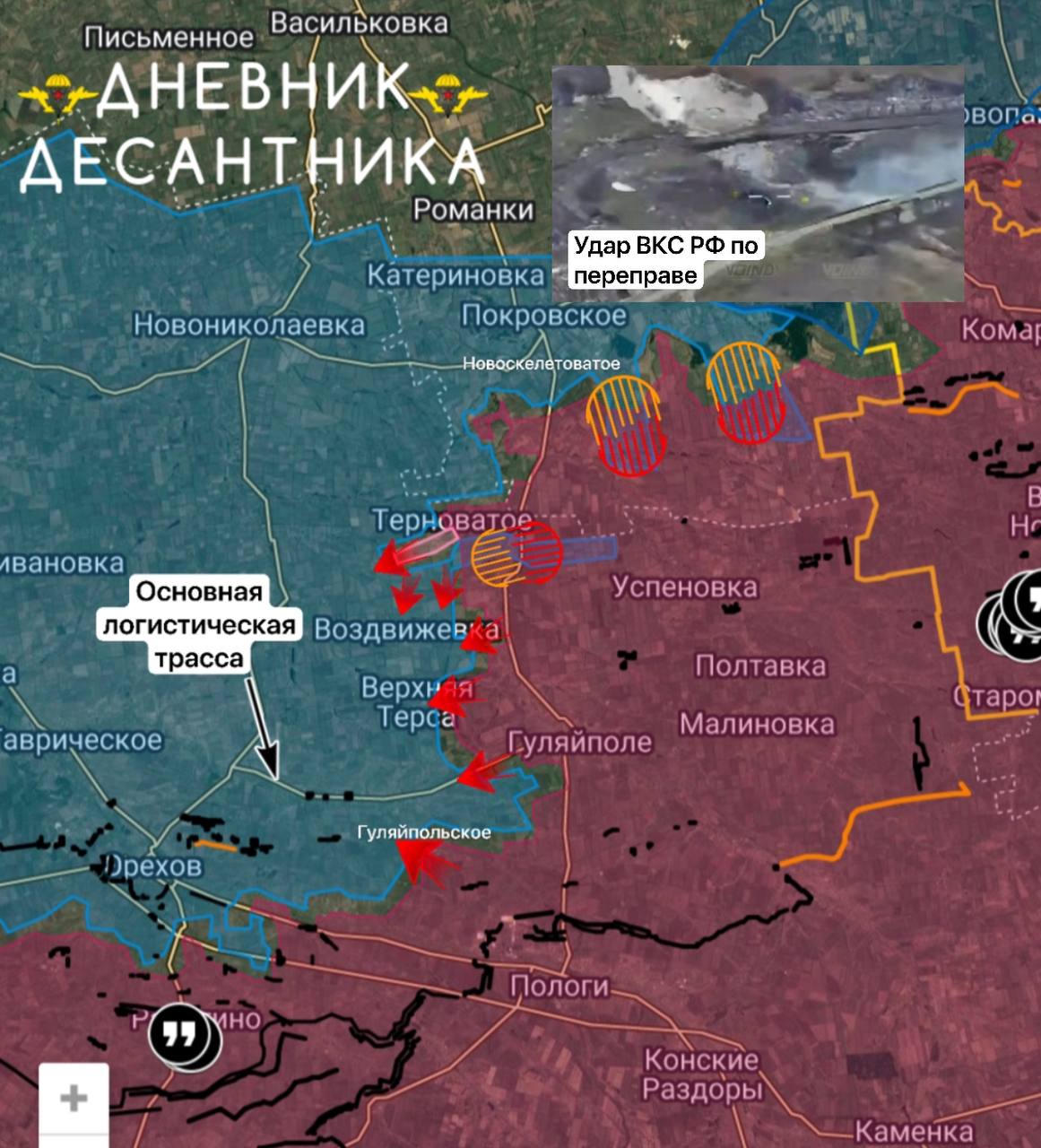 От Цветкового продвигаемся к Верхней Терсе, а южнее есть успехи у Гуляйпольского, где наши войска в ходе атакующих действий от Мирного, приближаются к селу;