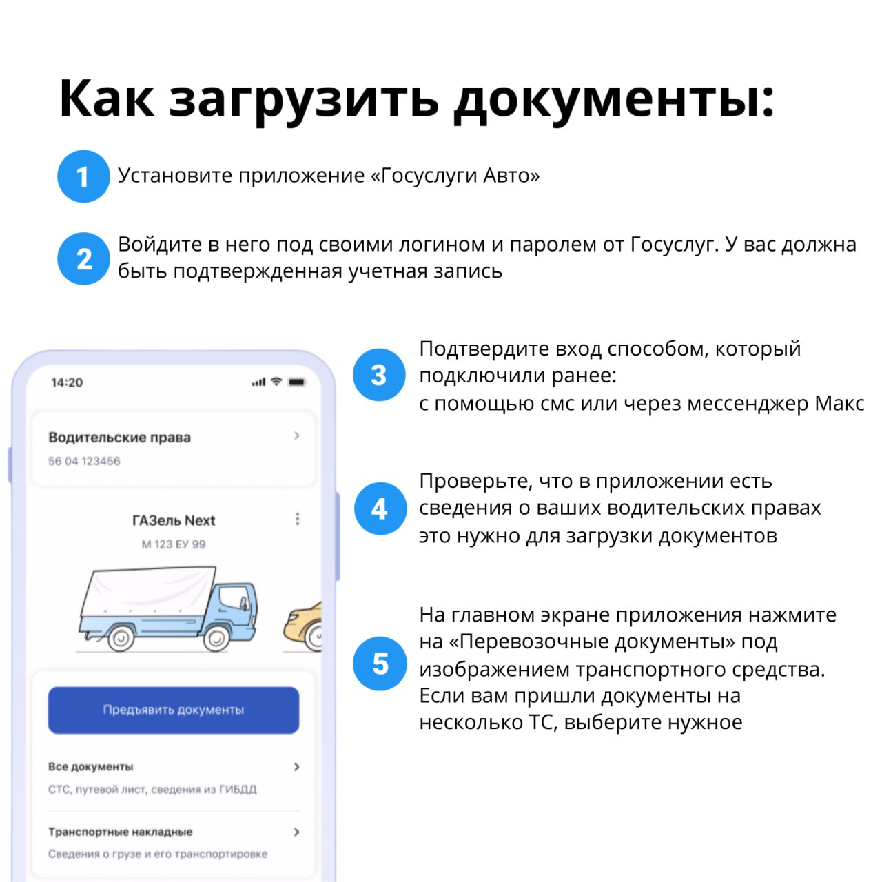 Электронные перевозочные документы можно оформить через мобильное приложение «Госуслуги Авто». В нём доступны: