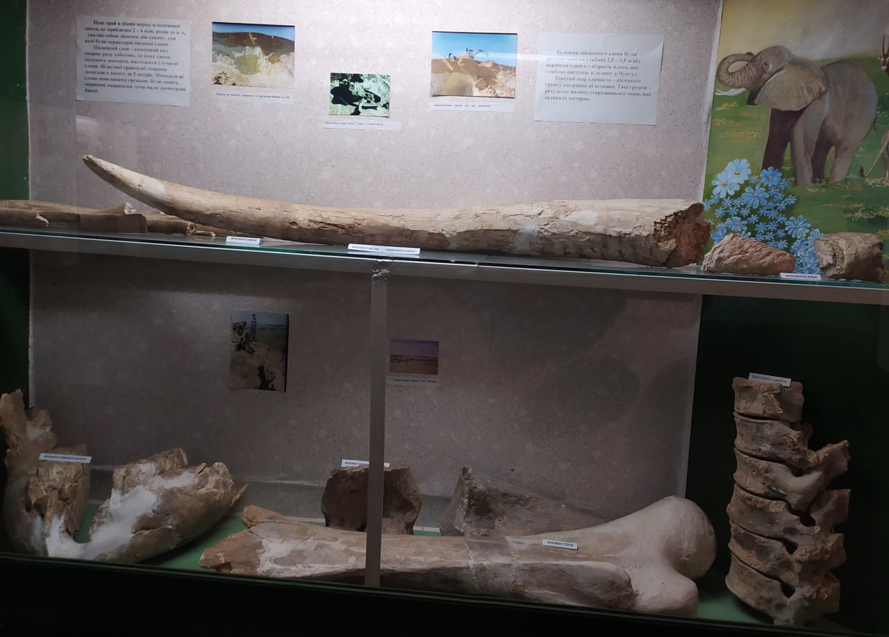 Самые большие фрагменты бивней, нижней челюсти, зуба, ребер и хребта, бедра южного слона были переданы в Токмакский краеведческий музей.
