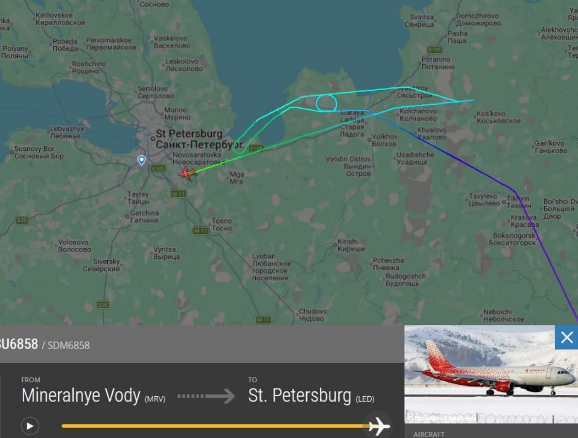 Самолёт, летевший из Минеральных Вод в Петербург, подал сигнал бедствия из-за заканчивающегося топлива.