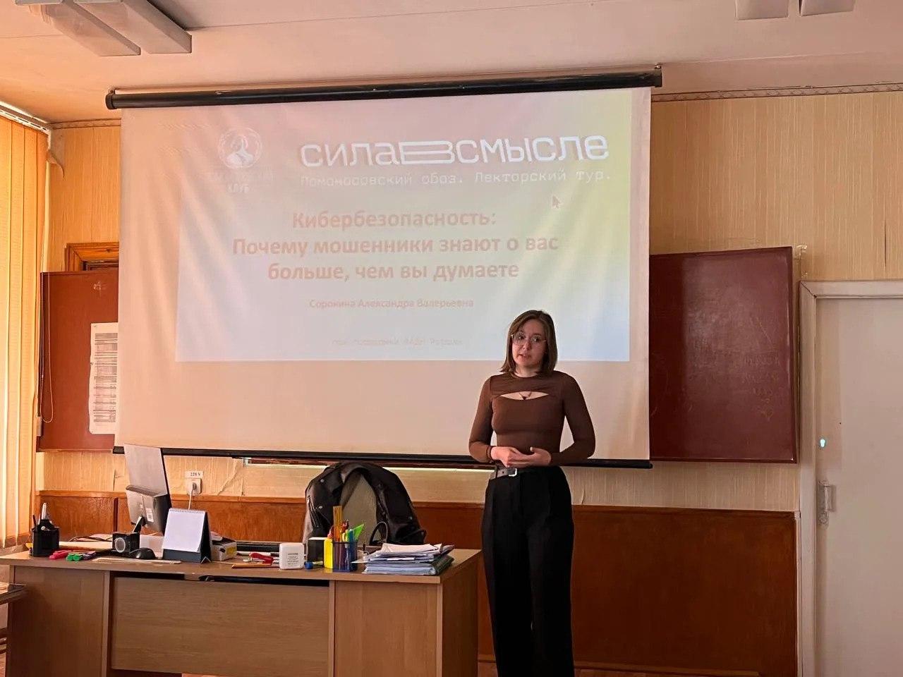 45 студентов Приморского колледжа (филиал) ФГБОУ ВО "МелГУ" прослушали лекции по кибербезопасности, которые им прочитала участник молодежного парламента Тульской области Александра Сорокина.