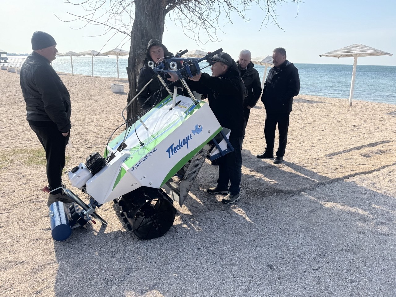 Сегодня на Центральном плаже Бердянска состоялась демонстрация работы новой самоходной машины для очистки песка 3-роколения «Пескарь ПМ-2». В мероприятии приняли участие директор МБУ «Благоустройство. Бердянск» Иван Шмаравоз и начальник отдела ЖКХ Александр Щербань.