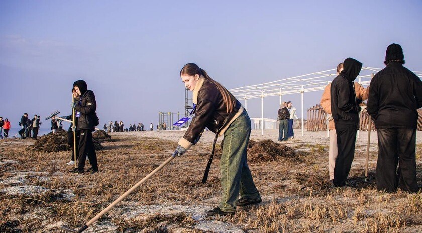 Волонтеры молодежных движений школы гуманитарных миссий «Юг Молодой» и «Экосистема» провели совместный субботник, сообщили в пресс-службе движения «Юг Молодой». Они очистили берег Азовского моря от водорослей и мусора.