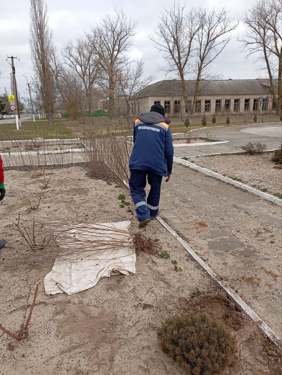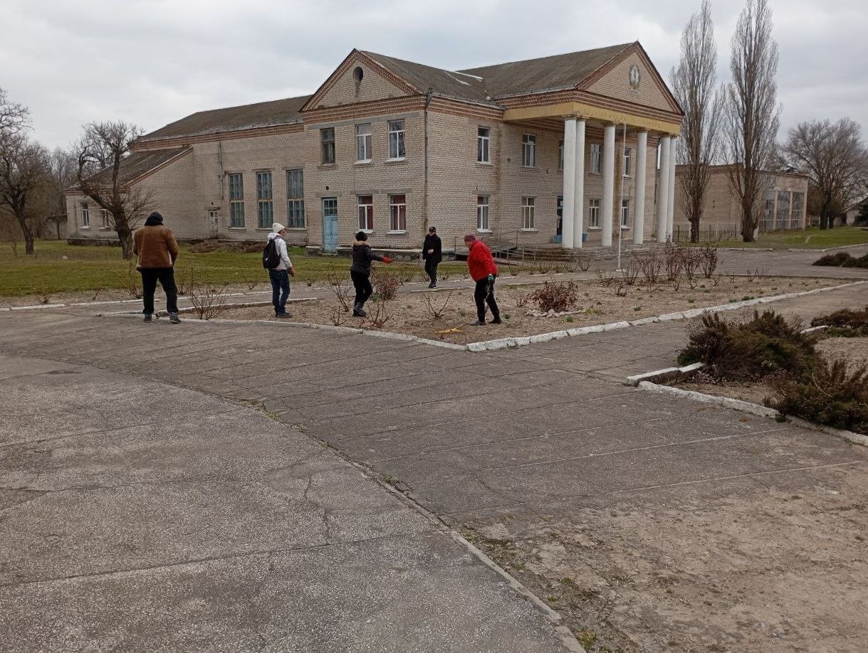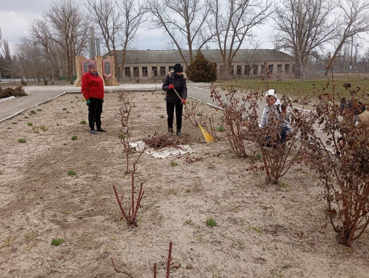 Был собран и утилизирован накопившийся после зимы мусор, обрезаны кусты роз и вспушен грунт вокруг них, пропололи сорняки на клумбах, а также сделали пересадку некоторых видов зелёных насаждений.