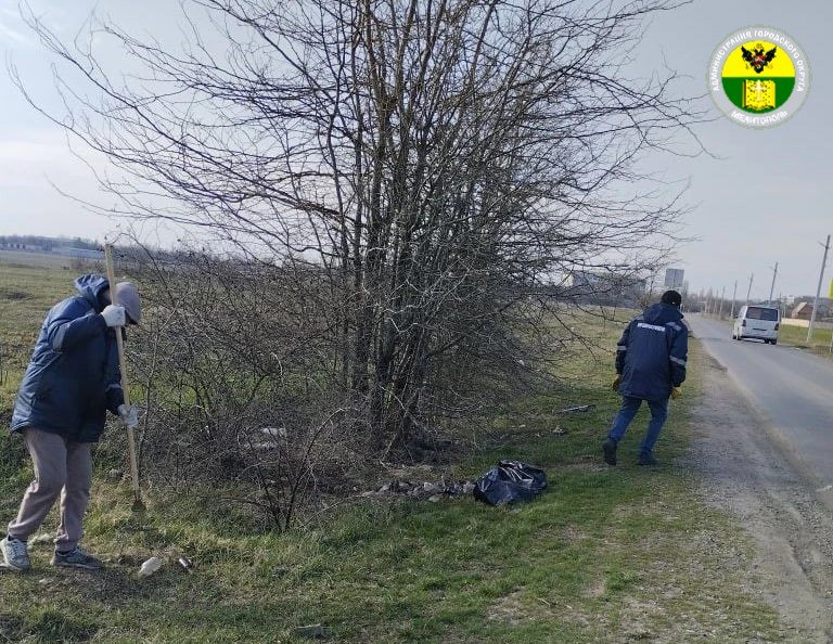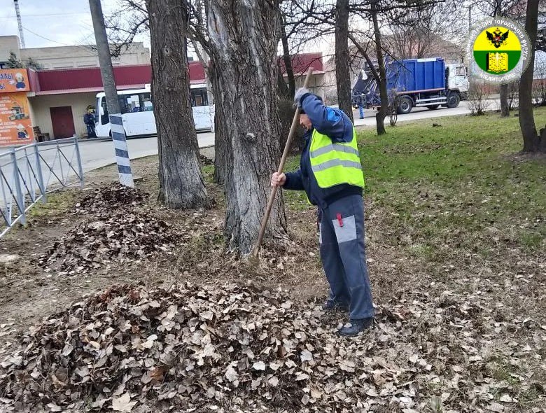 Сотрудники МКУ «Благоустройство» собрали сухую листву и очистили придорожные территории от мусора.