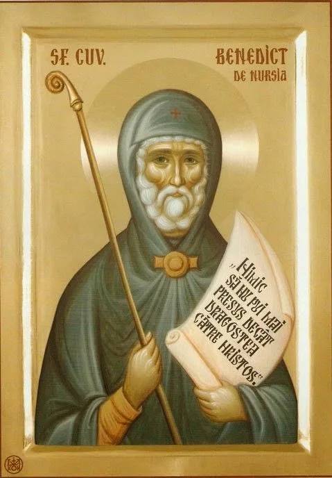 Святой Венедикт родился в 480 году в Италии в городе Нурсии, откуда и получил прозвище. В 14 лет он приехал для продолжения образования в Рим. Местные жители так поразили его разнузданностью нравов, что он решил полностью изменить жизнь и уйти от людей. Сперва он подвязался при церкви апостола Петра, а когда немного подрос, ушел в одиночестве в горы. Там он 3 года потратил на борьбу с разными искушениями. И победил все. После этого слава о нем разнеслась далеко — многие приходили в его горы, чтобы пожить рядом с ним и также победить свои грешные мысли под его руководством. Затем Венедикт пришел в окрестности города Касина в Кампанийской стране и там на горе на месте языческого храма построил храм в честь Иоанна Крестителя. Рядом с церковью он основал монастырь с очень строгим уставом, который соответствовал его душевному настрою. Позднее эти жесткие правила были переняты многими другими монастырями. Святой прославился прозрением, способностью лечить и даже творить чудеса.
