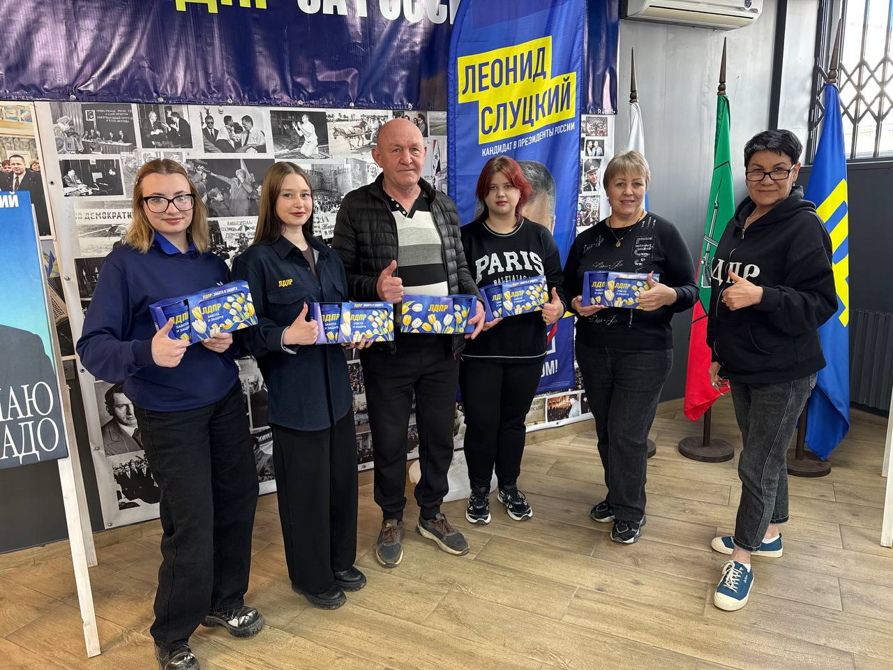 В региональном отделении ЛДПР собрались счастливчики, которых поздравила депутат законодательного собрания Запорожской области от ЛДПР Светлана Третьяк. В теплой атмосфере участники получили свои заслуженные призы — ланч-боксы в уникальном дизайне, посвященном 8 марта.