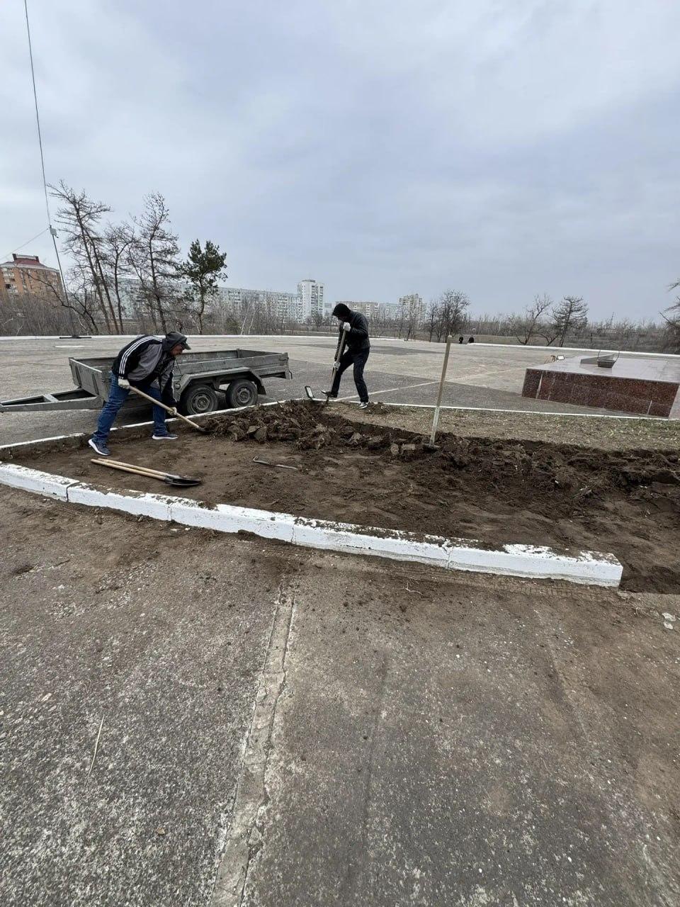 Началось благоустройство памятника «Братская могила советских воинов», расположенный на ул. Воинов-Интернационалистов.