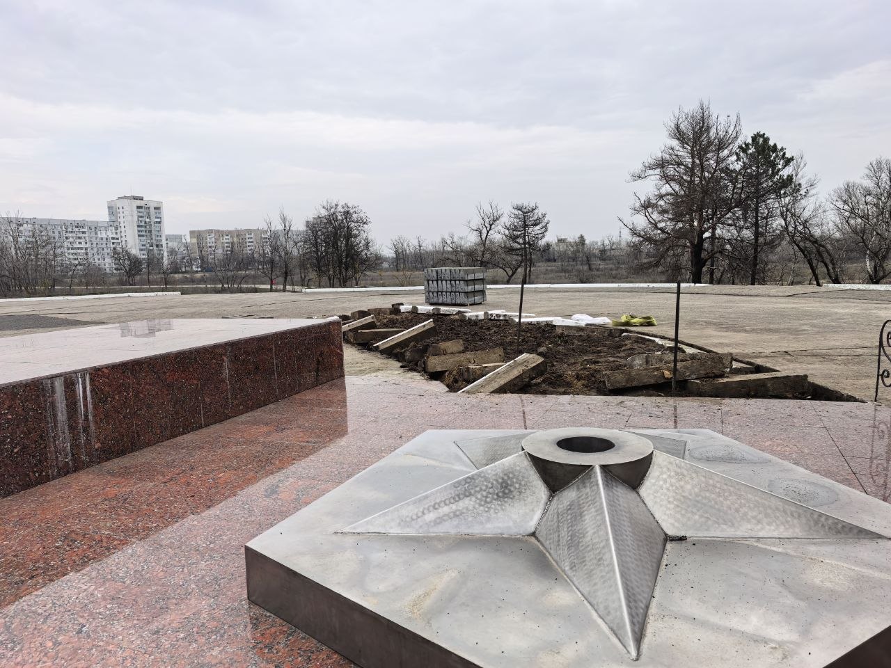Вечный огонь: восстановят все элементы — демонтируют и отполируют звезду, установят гранитные вазы.