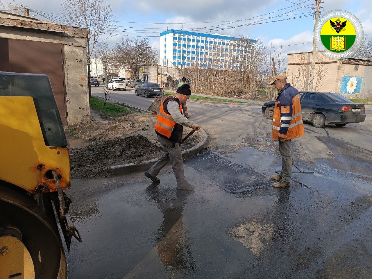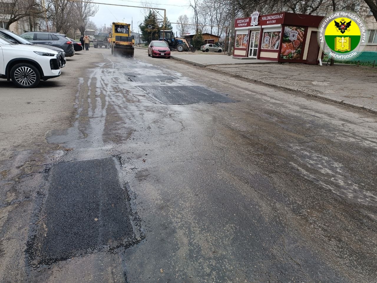 Работники МУП «Мелитопольский асфальтобетонный завод» выполнили ямочный ремонт по следующим адресам: