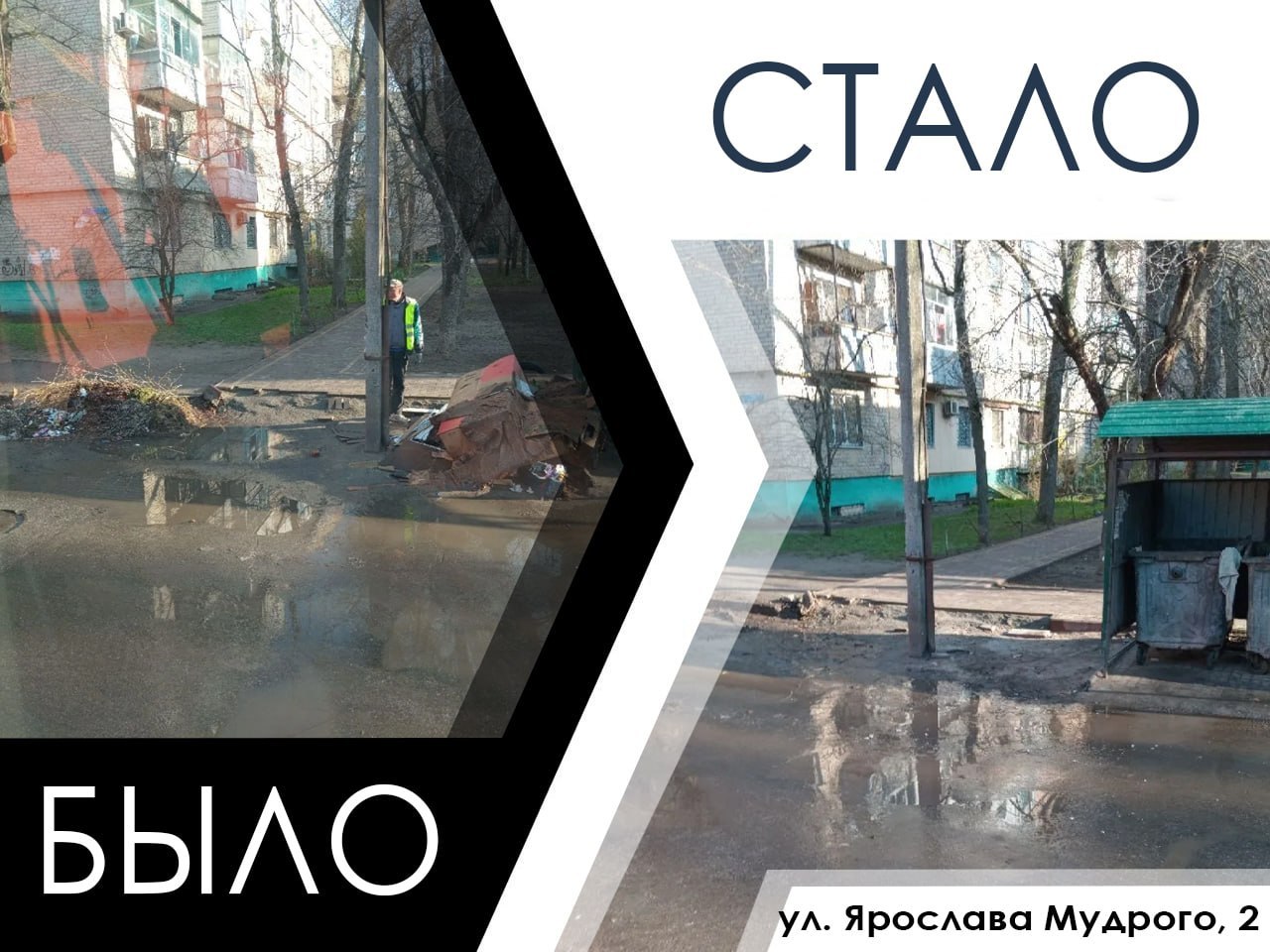 На улице Ярослава Мудрого, 2, 6, 17 были выявлены несанкционированные свалки бытовых отходов. Силами МКУ «Благоустройство» проведены работы по их ликвидации с привлечением спецтехники.