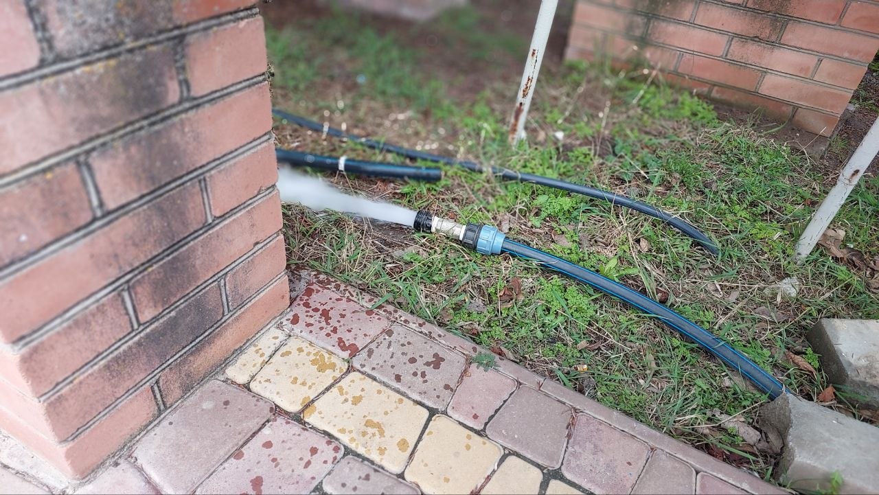 Работники МКУ "Благоустройство" Кирилловского участка городского округа Мелитополь произвели на клумбах в центре Кирилловки монтаж системы полива.