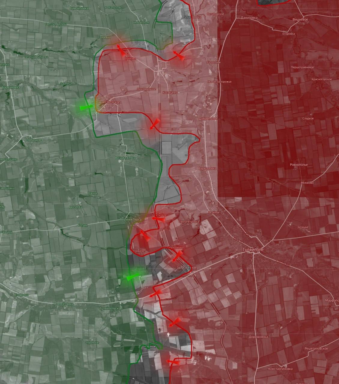 Южнее продолжаются бои на окраинах Верхней Терсы, армия РФ атакует в районах Гуляйпольского, Волшебного и Мирного».