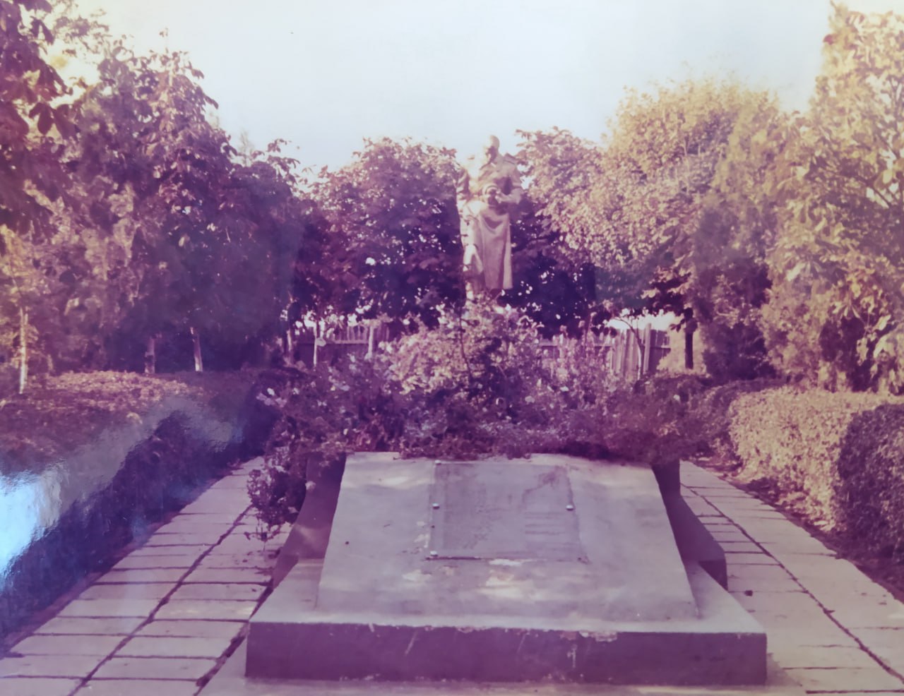 На фото 2. В 80-е годы территория братской могилы была благоустроена, здесь уложили тротуарную плитку, сделали новые стелы для плит с именами погибших.