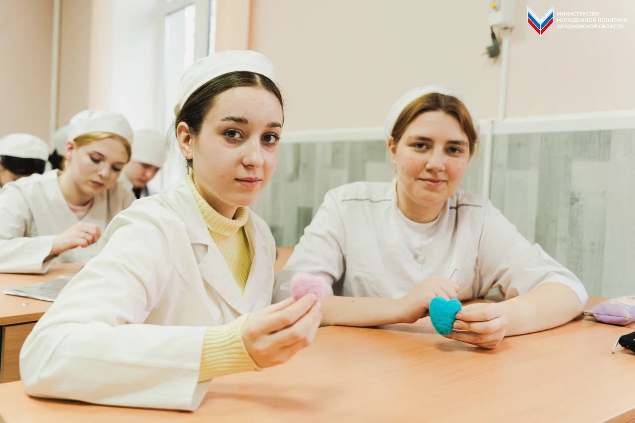 Активисты «Юга Молодого» провели для студентов Мелитопольского медицинского профильного колледжа мастер-класс по валянию из шерсти в рамках проекта «Таланты Юга». Руководитель проекта Софья Кравцова и её заместитель Анна Бойка показали правильную технику и сделали вместе с ребятами сердца из ниток для валяния.