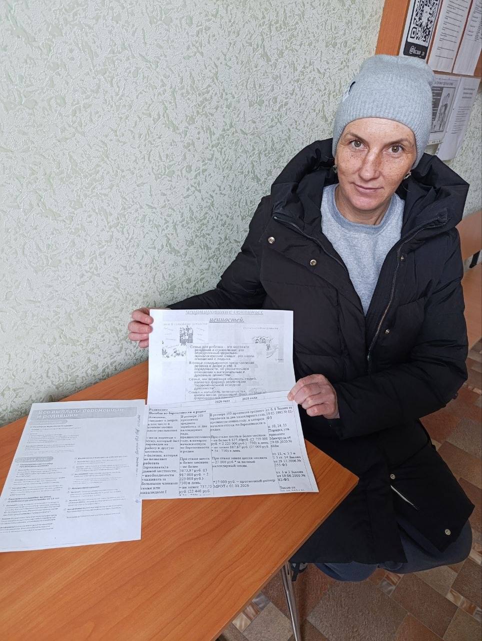 Работа была организована с беременной и недавно родившей матерями. В ходе встреч обсуждались важные темы: выплата единовременных и детских пособий, укрепление семейных ценностей, а также влияние вредных привычек и их последствия для плода.